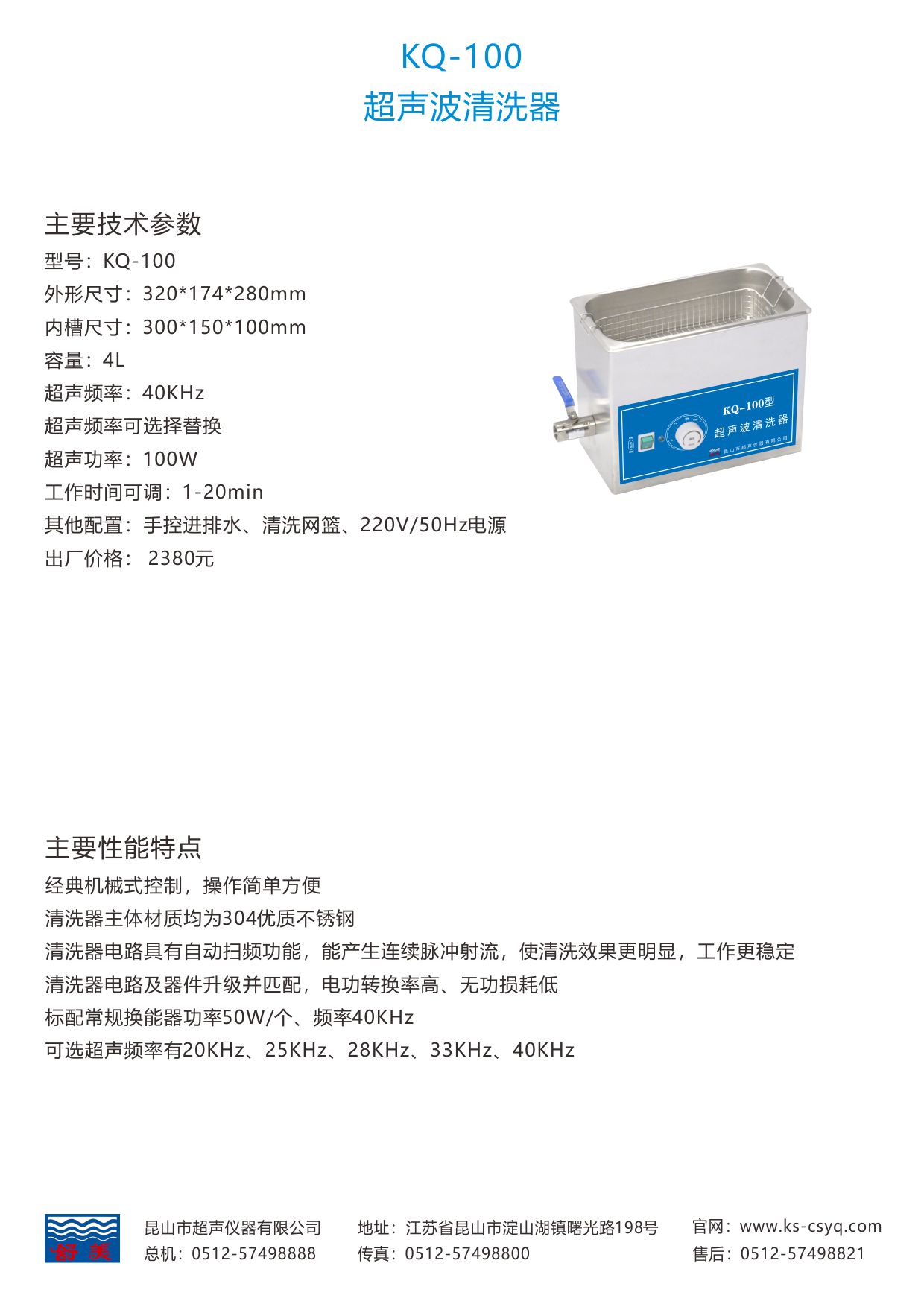 可选超声频率有20KHz、25KHz、28KHz、33KHz、40KHz 。